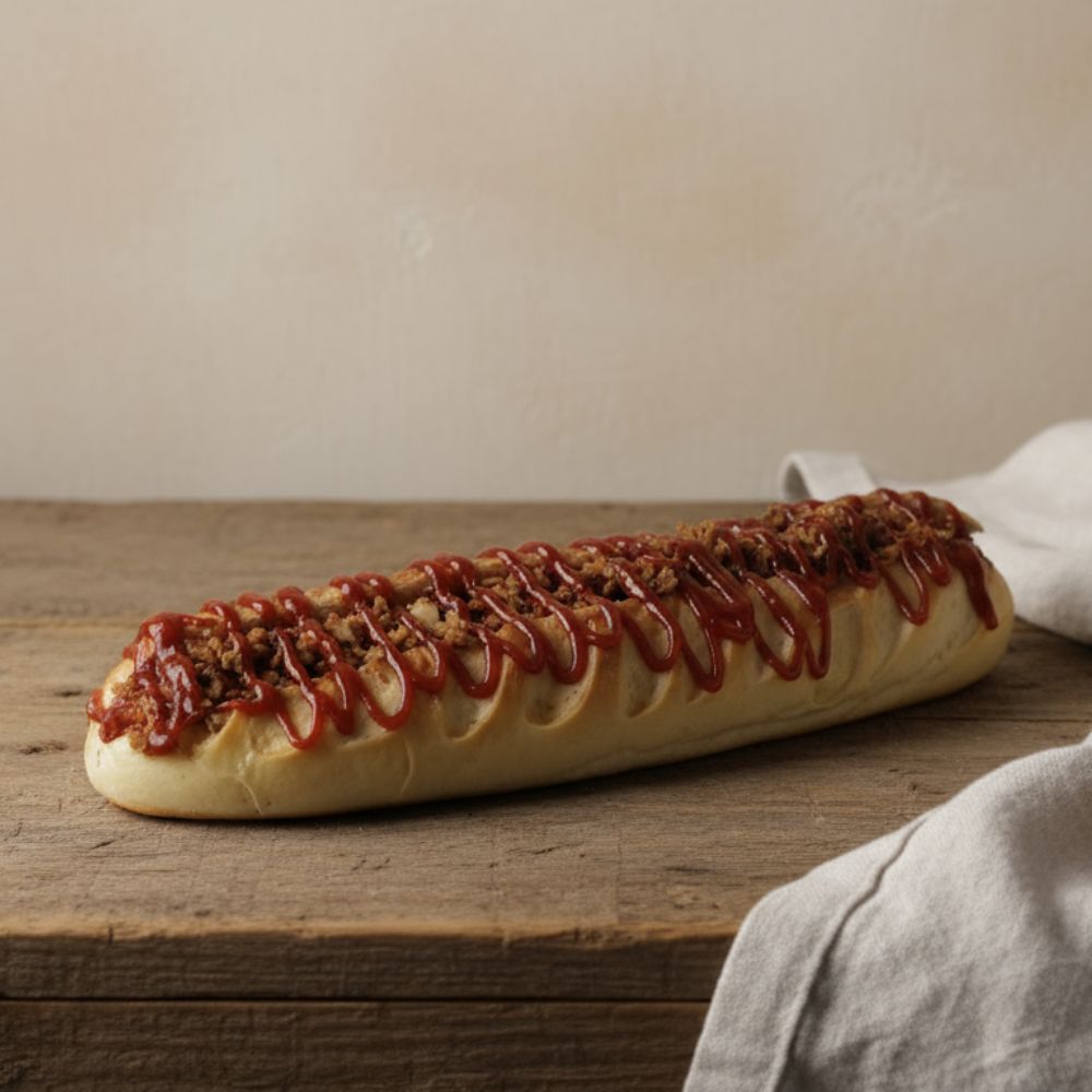Jambon à l’os avec du beurre sur une baguette croustillante.